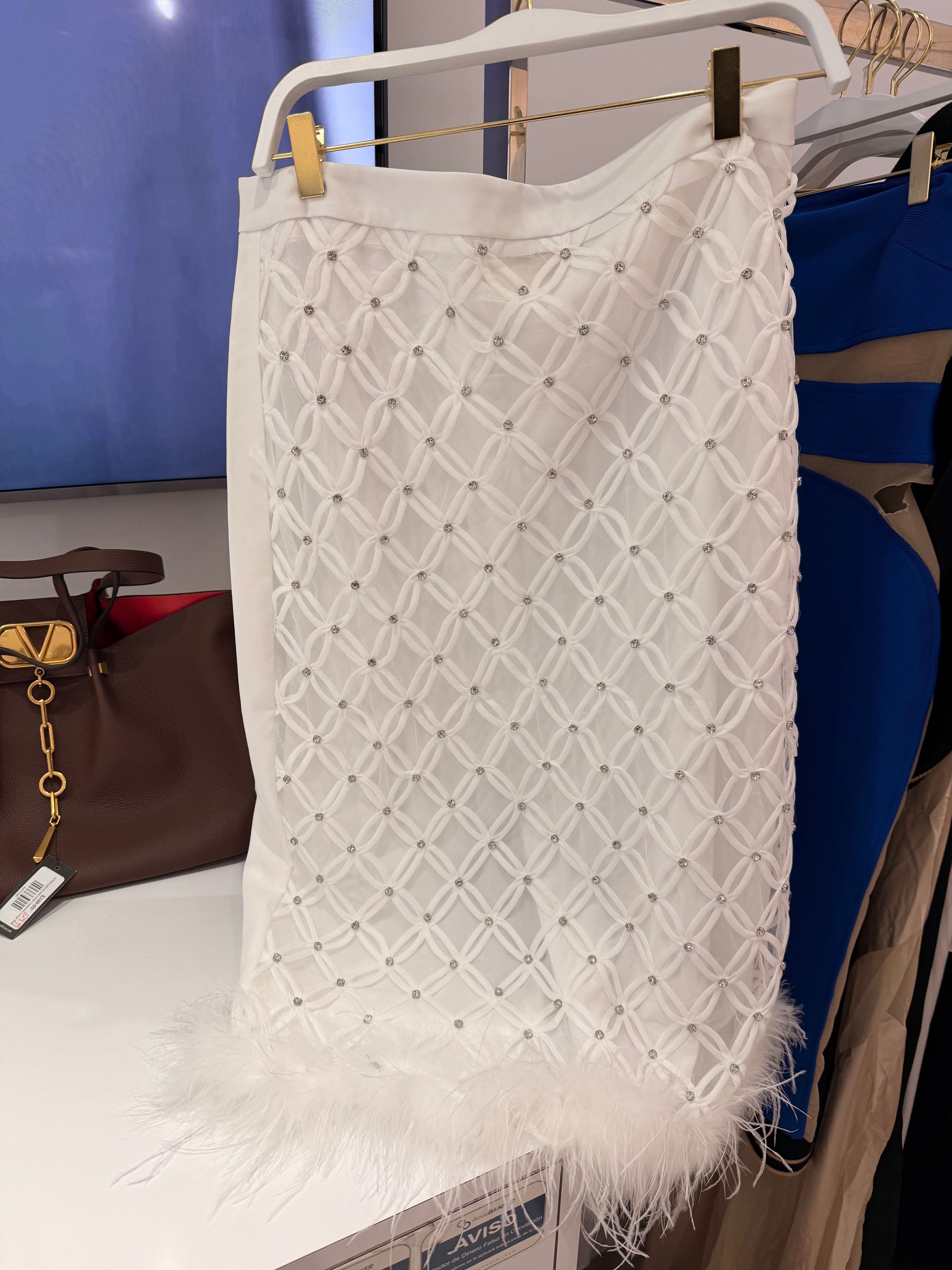 Rhinestone and feather skirt white
